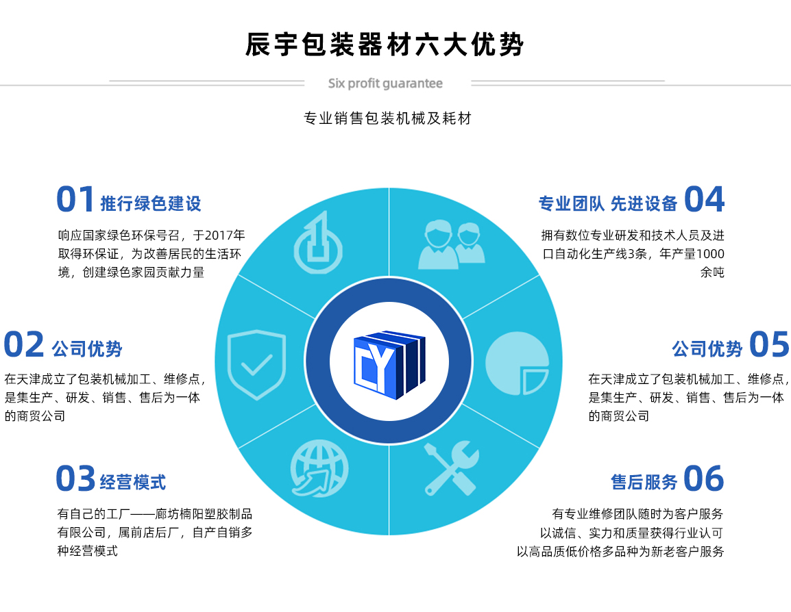 天津辰宇包裝器材有限公司原天津市辰宇商貿有限公司,位于天津市南開區密云一支路新南馬路五金城二區33棟106號,本公司主要經營:打包帶,打包機系列,封箱機系列,纏繞機系列,拉伸膜,膠帶,尼龍繩,其他包裝耗材等產品 公司產品質優(yōu)價廉,暢銷全國各大城市。同等質量比價格,同等價格比質量,我們確保質量,價錢合理,交貨迅速及時。公司始終秉承“精益求精,鑄造品質的典范”的經營理念,真誠為廣大客戶提供真誠的服務! 天津市辰宇包裝器材有限公司,感謝廣大新老客戶的鼎力支持,竭誠歡迎社會各界朋友前來洽談業(yè)務,愿真誠合作攜手共創(chuàng)美好未來!